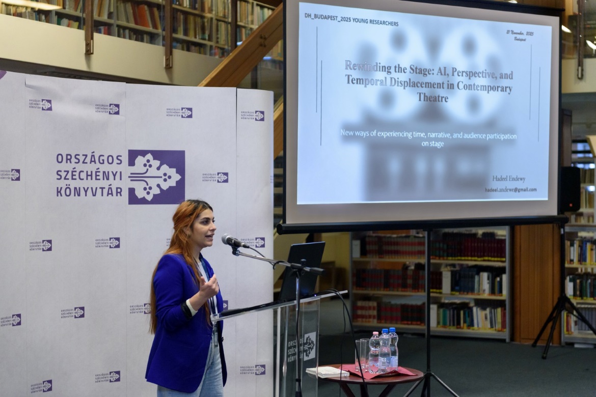 Literary and theatrical perspectives were addressed by Hadeel Endewy and Dorottya Szemigán, covering topics such as AI-assisted interactive theatre, the limitations of algorithmic reading for marginalized literatures, and the Disztichon Alfa as a generative poetic model. Issues of digital preservation and archival methodology were discussed by Dario Baldini.