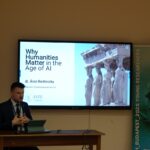 Az irodalmi és színházi nézőpontokról Hadeel Endewy és Szemigán Dorottya beszélt. Témáik között szerepelt az MI által támogatott interaktív színház, az algoritmikus olvasás korlátai marginalizált irodalmak esetében, valamint a generatív költészeti modellként elemzett Disztichon Alfa. A kulturális örökség digitális megőrzésének módszertani és technikai kérdéseit Dario Baldini tárgyalta.